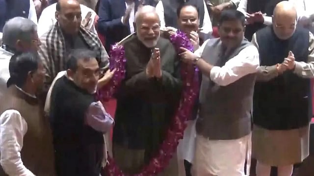 New Delhi | Prime Minister Narendra Modi was felicitated at a meeting of all MPs of the ruling NDA on Tuesday for the coalition's massive victory in the recent Bihar elections.