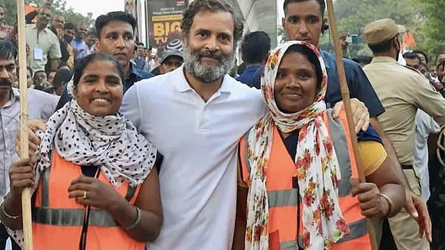 Addressing a women's rally in Maharashtra's Dhule district as part of his ongoing 'Bharat Jodo Nyay Yatra', Gandhi also promised that the central government share in the budget for women working as ASHA, anganwadi workers and those in mid-day meal schemes would be doubled.