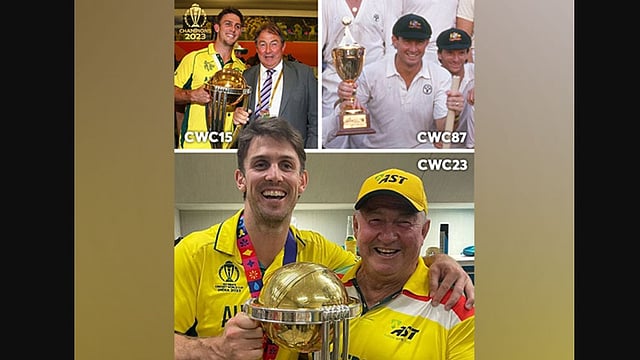 Ahmedabad | Australian all-rounder Mitchell Marsh expressed happiness with his team's ICC Cricket World Cup title win, posting a picture with his father, legendary batter Geoff Marsh who has also lifted the gold with Aussies back in 1987.