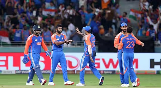 Pakistan: 146 all out in 19.1 overs (Sahibzada Farhan 57, Fakhar Zaman 46; Kuldeep Yadav 4/30).