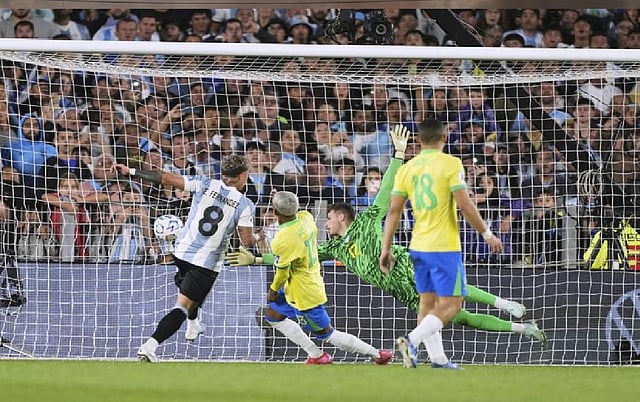 Julián Alvarez netted the first in the 4th minute after Marquinhos, Murillo and Guilherme Arana failed to reach the ball. The Argentina striker shot between the legs of goalkeeper Bento from close range.