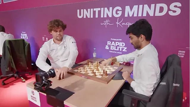 With just three rounds to come in rapid section, Gukesh enjoys two points lead over nearest rival Duda Jan-Krzysztof of Poland. Wesley So of United States is in sole third spot on seven points, a full point clear of Carlsen, Anish Giri of Holland and local hero Ivan Saric.
