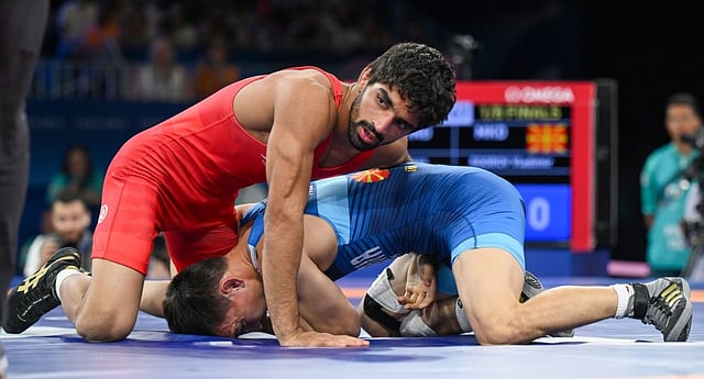 Paris | Young Indian grappler Aman Sehrawat ensured himself an easy passage into the quarterfinal with a dominating performance against North Macedonian rival Vladimir Egorov in the 57kg freestyle category at the Paris Olympics here on Thursday.