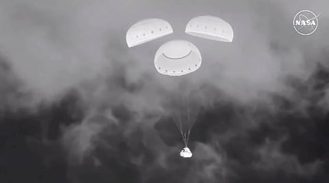 Six hours after departing the International Space Station, Starliner parachuted into New Mexico's White Sands Missile Range, descending on autopilot through the desert darkness.