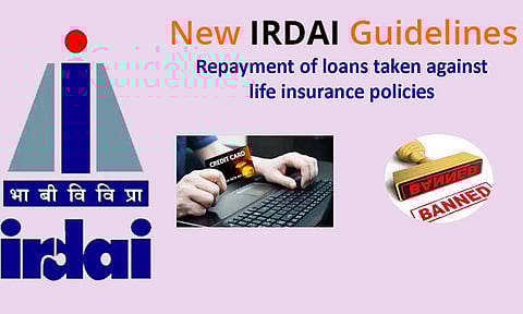 In a recent order, the Insurance Regulatory and Development Authority of India (Irdai) has asked all life insurers to stop the acceptance of credit cards as a mode of re-payment of loans granted against insurance policies with immediate effect.