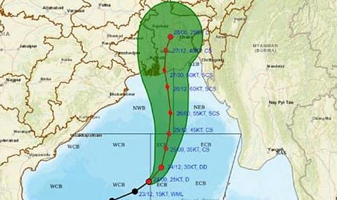 A storm surge of up to 1.5 metres is expected to inundate low-lying areas of coastal West Bengal and Bangladesh at the time of landfall.
