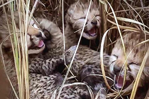 New Delhi | A Namibian cheetah has given birth to three cubs at the Kuno National Park in Madhya Pradesh, weeks after three cubs were born to another feline.