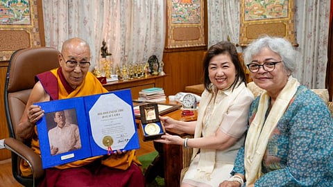 Dharamsala | The 1959 Ramon Magsaysay Award was presented to Tibetan spiritual leader the Dalai Lama at his residence here by members of the award foundation personally after 64 years on Wednesday, his office said.