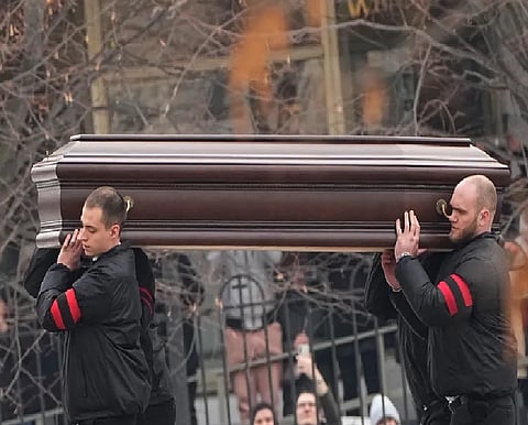 On livestreamed footage, his coffin could be seen being taken out of the vehicle, with the crowd applauding and chanting in the background: “Navalny! Navalny!” Kremlin spokesman Dmitry Peskov urged those gathering in Moscow and other places not to break the law, saying any “unauthorised (mass) gatherings" are violations.