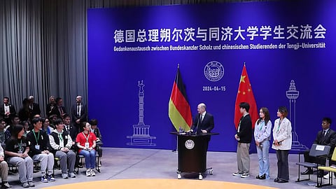 Scholz began his three-day China trip on Sunday in the industrial hub of Chongqing, where he and his delegation of ministers and business executives visited a partially German-funded company and other sites in the vast city, which is a production base for China's auto and other industries.