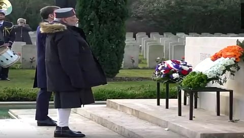 Paris | Prime Minister Narendra Modi on Wednesday visited the historic Mazargues Cemetery in Marseille city here along with French President Emmanuel Macron and paid tribute to the Indian soldiers who made sacrifices fighting in the Great War.