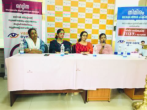 Dr. Amreen A, Chief Medical Officer & Cornea, Cataract, Medical Retina, Refractive Surgeon, Dr. Krishin K, Vitreo-Retinal Surgeon, Dr. Tara Narendran, and Dr. Nithya Bhai T spoke at the press conference held in Calicut ASG Vasan Eye Hospital.