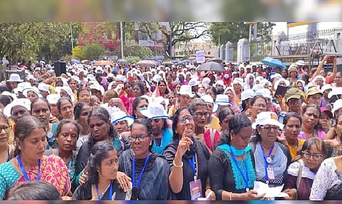 Kerala ASHA Health Workers Association (KAHWA) members have been protesting outside the Secretariat for 57 consecutive days, demanding retirement benefits and a higher honorarium.