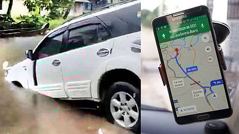 Kottayam(Kerala) | Using Google maps to navigate resulted in a tourist group from Hyderabad driving into a stream swollen with water near Kuruppanthara in this south Kerala district, police said on Saturday.