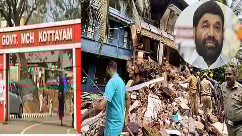The toilet complex adjacent to wards 10, 11, and 14 at Kottayam Government Medical College collapsed on Thursday while the hospital was in the process of fully shifting operations to the newly constructed surgical block.