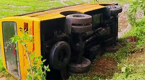 Thiruvananthapuram | Some school students suffered minor injuries after their school bus skidded off from the road and fell into a field in nearby Nagaroor on Tuesday, police said.