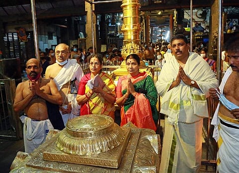 Guruvayur (Ker) | Tamil Nadu Chief Minister M K Stalin's wife Durga Stalin presented a gold crown as an offering to Lord Krishna at Kerala's famous Guruvayur temple on Thursday.