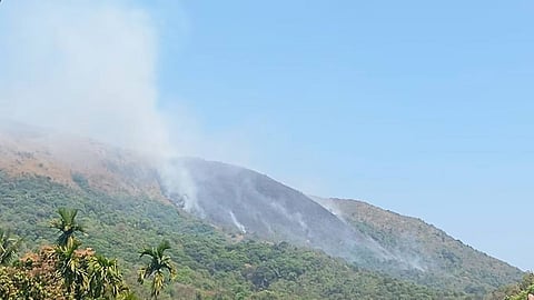 Wayanad (Kerala) | A day after a wildfire destroyed part of the grassland in the Kambamala forests in this hilly district, the fire recurred in the same hills near Mananthavady on Tuesday.