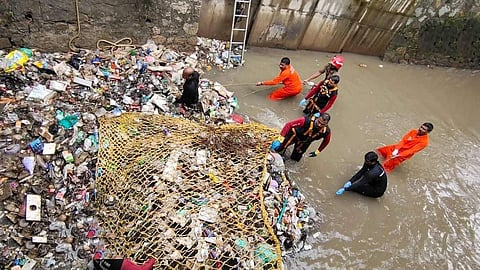 The canal is filled with plastic and hard waste, which makes the rescue operations difficult.