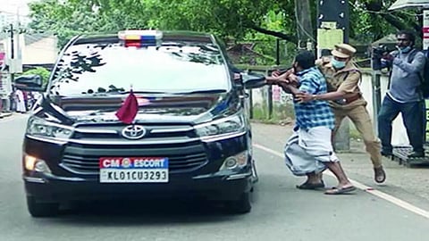 Protesters waved black flags at the convoy of ministers K Rajan, A K Saseendran and M B Rajesh in protest against the alleged delay in their arrival in the district which had witnessed back-to-back human casualties due to wild animal attacks in recent days.
