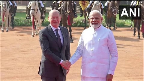 Prime Minister Narendra Modi received Scholz at the Rashtrapati Bhavan, where the German leader was accorded a ceremonial welcome.