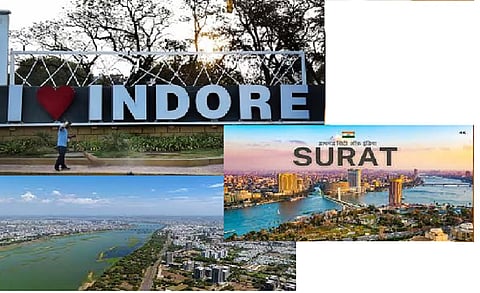 New Delhi | Indore and Surat were adjudged the 'cleanest cities' in the country while Navi Mumbai retained the third position in the Central government's annual cleanliness survey, the results of which were announced Thursday.