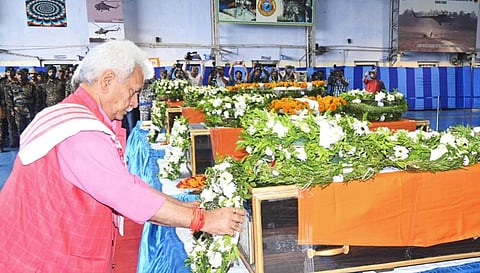 As the nation mourned the loss of these brave soldiers, tributes were paid to the soldiers in a solemn wreath-laying ceremony attended by dignitaries including J-K Lt Governor Manoj Sinha and Army Chief General Upendra Dwivedi.