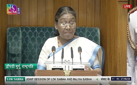 Congratulating the new MPs in her first address to the joint sitting of Parliament after the constitution of the 18th Lok Sabha, Murmu said she hoped they would act as the medium for fulfilling the aspirations of the people of India.