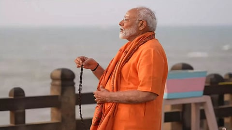 Kanyakumari (Tamil Nadu) | Prime Minister Narendra Modi embarked on his second and final day of meditation here on Saturday, after performing the 'Surya Arghya' during sunrise at the Vivekananda Rock Memorial here, officials said.