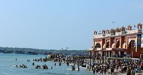 Rameswaram | Prime Minister Narendra Modi on Saturday worshipped at the Lord Ramanathaswamy temple here after taking a holy dip at the 'Angi theerth' beach.