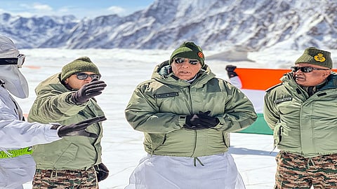 New Delhi | Defence Minister Rajnath Singh on Monday visited Siachen, the world's highest battlefield, and reviewed India's overall military preparedness in the region.