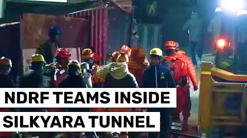 Uttarkashi | The NDRF on Friday conducted a rehearsal of how it would take its wheeled stretchers through the chute being prepared to rescue the 41 workers trapped inside the Silkyara tunnel.