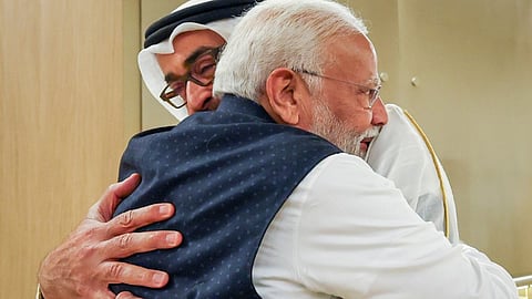 In a special and warm gesture, Modi was received at the airport by President Mohamed bin Zayed. The two leaders hugged each other. He was later given a guard of honour.