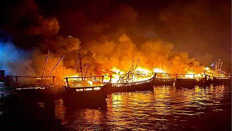 The fire broke out in a town jetty area where fishing boats were anchored. After receiving information about the blaze, firefighters rushed to the spot, Visakhapatnam District Fire Officer S Renukayya told PTI.