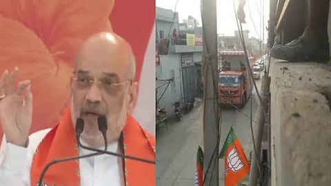 Jaipur | Union Home Minister Amit Shah had a narrow escape on Tuesday when a 'rath' in which he was travelling came in contact with an electricity wire in Rajasthan's Nagaur.
