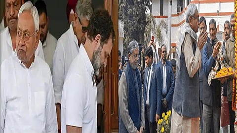 Patna | Top leaders of the JD(U) on Saturday rushed to the residence of Bihar Chief Minister Nitish Kumar, the party president, amid strong indications that he was planning to quit the ruling 'Mahagathbandhan' and revert to the BJP-led NDA.