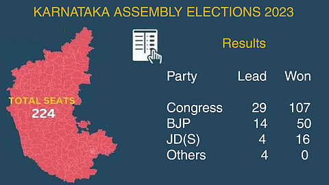 Bengaluru | The following is the party position in the Karnataka Assembly elections at 4.45 pm on Saturday, according to latest counting trends updated by the Election Commission. Elections to 224 seats were held on May 10.