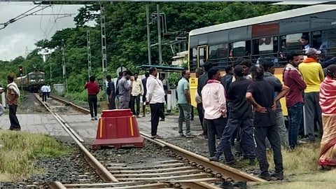 Sensing something was not right since many people had gathered on the tracks, the loco pilot applied the brakes and brought the train to a halt before the level crossing, he said.