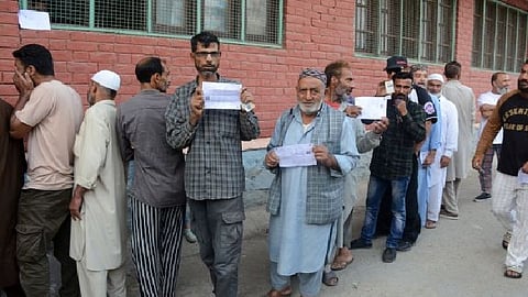 Srinagar | A voter turnout of 36.93 per cent was recorded till 1 pm in the second phase of Jammu and Kashmir polls on Wednesday, the Election Commission saA voter turnout of 46.12 per cent was recorded till 3 pm in the second phase of Jammu and Kashmir polls on Wednesday, the Election Commission said.