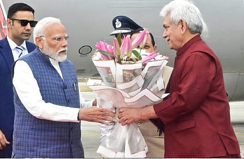 Amid heightened security arrangements, Modi was received at the Jammu technical airport by Lt Governor Manoj Sinha and Union minister Jitendra Singh and prominent BJP leaders including J&K unit president Ravinder Raina, officials said.