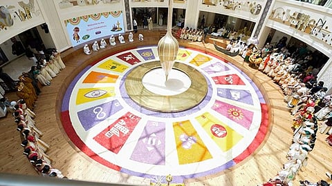 Laying out a 250-square-metre 'Pookalam', the frontliners offered a floral tribute to the UAE's Year of Sustainability and the COP28 Climate Change Conference the country will be hosting this year.