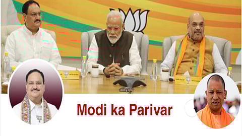 Lucknow | Uttar Pradesh Chief Minister Yogi Adityanath and other senior BJP leaders, including Deputy Chief Ministers Keshav Prasad Maurya and Brajesh Pathak, on Monday added 'Modi ka parivar' to their social media handles after Prime Minister Narendra Modi's assertion that the whole country is his family.