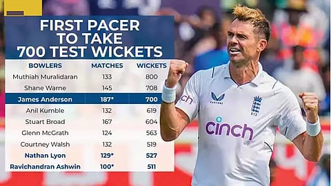 Dharamsala | England veteran James Anderson added another glorious chapter to his remarkable tale of longevity when he became the first pacer and third bowler to take 700 Test wickets here on Saturday.