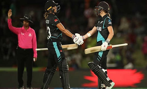 Paarl | Riding on fine half-centuries from opener Suzie Bates (56) and Amelia Kerr (66), New Zealand thrashed Sri Lanka by 102 runs in the Women's T20 World Cup to spice up the semifinal qualification scenario in Group A. The pair combined for a second-wicket partnership of 110, the White Ferns' third-highest ever at the tournament, to take the side to 162 for three before dismissing Sri Lanka for 60 in 15.5 overs on Sunday.This was Sri Lanka's second big loss in the tournament and their hopes of progressing to the semi-finals from the five-team group are over.New Zealand, led by Sophie Devine, meanwhile, received a massive net run rate (NRR) boost as they climbed to second spot in the group behind Australia.