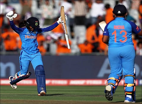 Jemimah (53 not out off 38 balls) and Richa (31 not out off 20 balls) stitched 58 runs for the unconquered fourth wicket as India chased down a challenging target of 150 with six balls to spare.