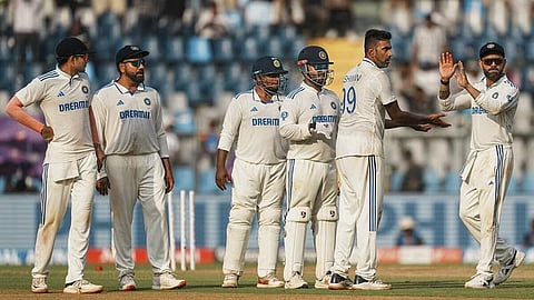 New Zealand 235 all out and 174 all out in 45.5 overs (Will Young 51; Ravindra Jadeja 5/55, Ravichandran Ashwin 3/63).
