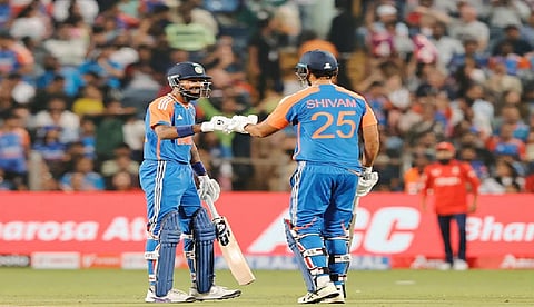 Invited to bat, Hardik Pandya (53) and Shivam Dube (53) scored commanding fifties to power India to 181 for 9.
