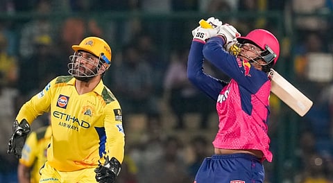 After Samson's dismissal, Suryavanshi and Riyan Parag (3) also joined their skipper in the dug out, and it looked like Royals may again snatch defeat from the jaws of victory.