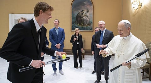 The top-ranked tennis player visited the new pope on Wednesday, gave him a tennis racket and offered to play, during an off day for Sinner at the Italian Open.